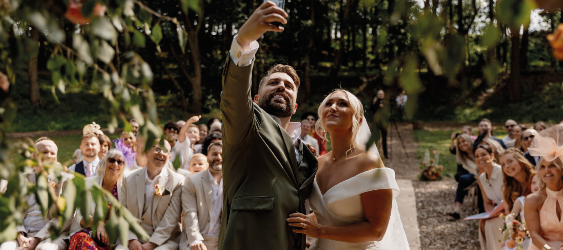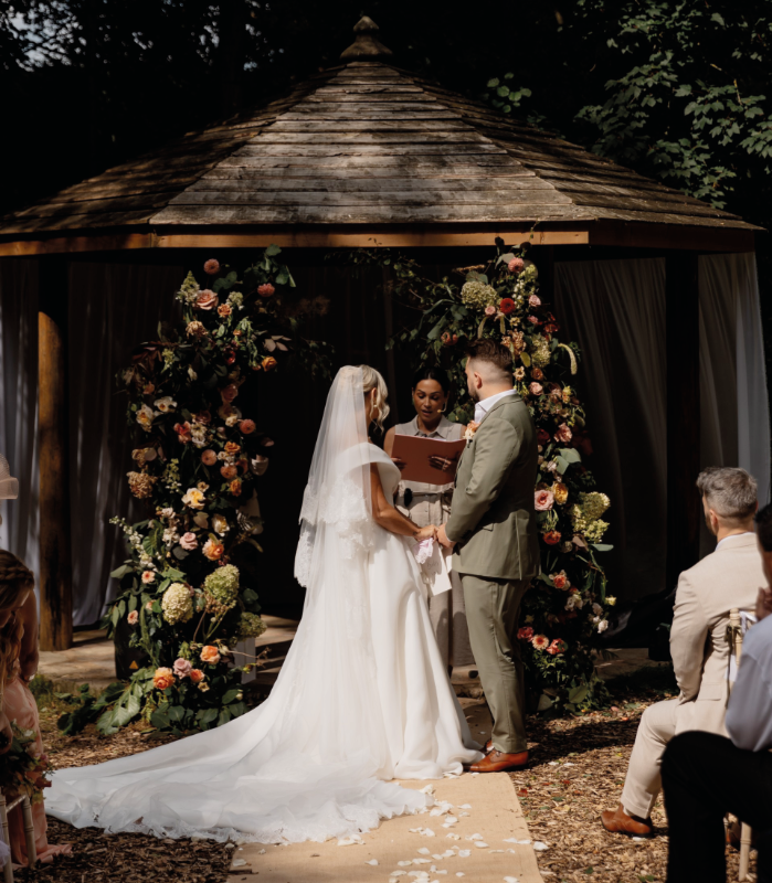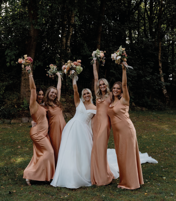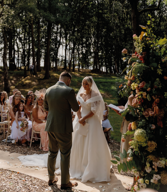 This way, they could create their personal and meaningful ceremony in our idyllic woodland Bower. Our beautiful outdoor bower is immersed in nature and feels a world away. Every moment was carefully choreographed – for example, Emma and Naomi exchanged discreet signals to ensure Amber and her bridesmaids set off down the aisle at exactly the right time.