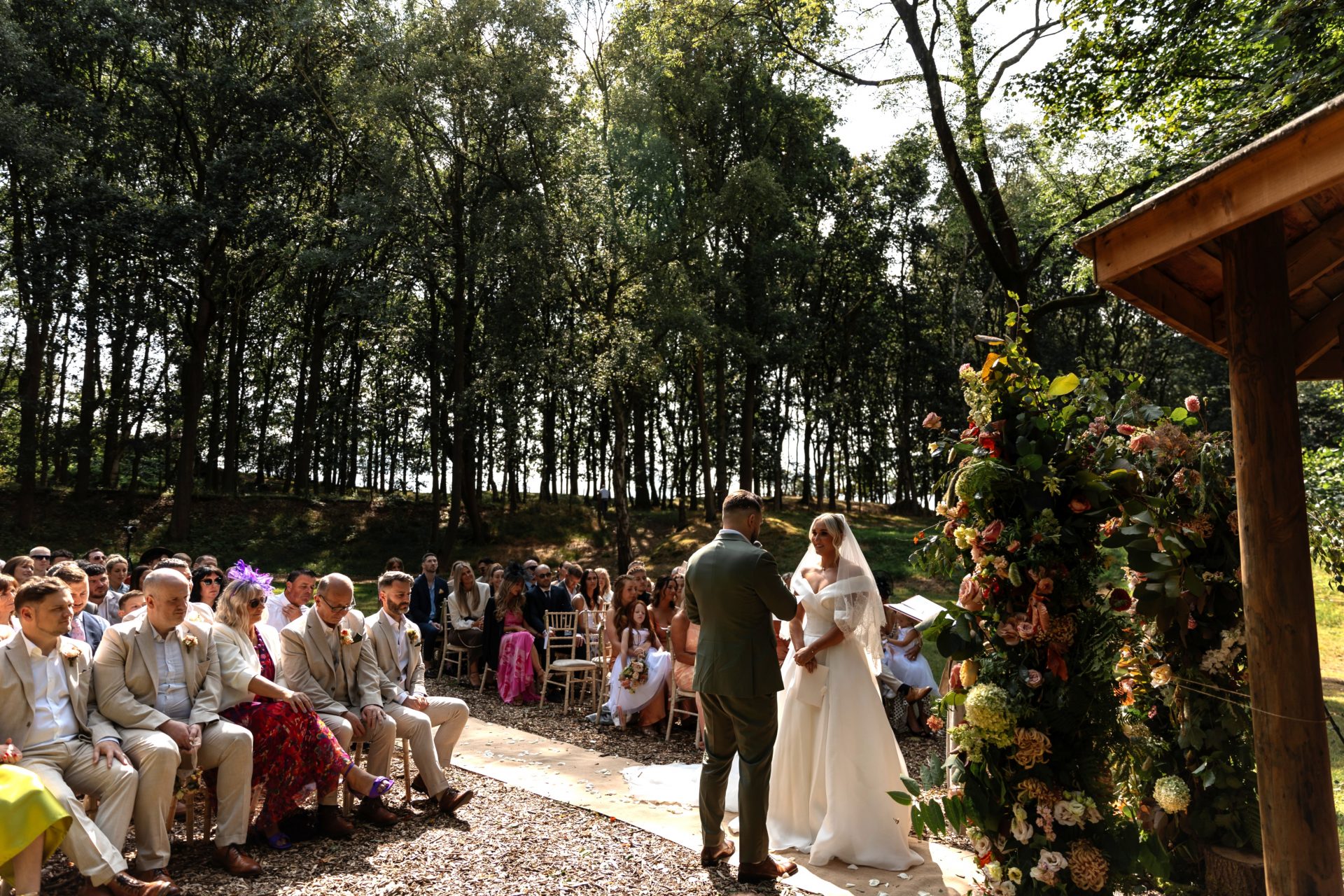 In the heart of our woodland, kissed by dappled sunlight, there is a tranquil meadow where your legal ceremony takes place. Up to 90 of your loved ones can be seated to witness your marriage in this natural sanctuary. Choose to be married legally by Cheshire East Registrars or by a celebrant.